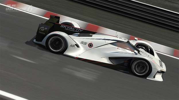 Mazda的設計團隊便以車廠中的經典傳奇賽車787B為靈感來源,融入Mazda的Kodo魂動設計語言,設計出LM55 Vision Gran Turismo這款作品作為回應。猶如現行LM P1原型賽車的線條輪廓,配合著LM55車名中的「LM」明示,讓人輕易地聯想到那必須連續奔馳24小時的Le Mans大賽,也與1991年787B賽車為Mazda贏得車廠歷史中唯一一次Le Mans 24小時勝利搭起連結。