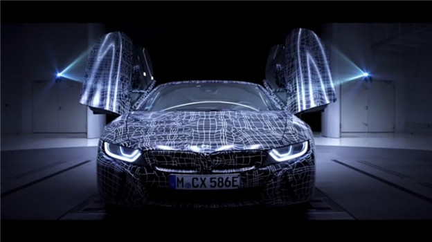 為了將驚喜保留到發表會,車廠對影片中的「 i8 Roadster」 施以輕度偽裝包覆處理,不過車側玲瓏有緻的摺線造型,以及車背上的雙駝設計也清晰可見,新設計的頭尾燈組更富層次感,為新車勾畫出炯炯有神的扮相,其中透過風洞意象也清楚地表示新車亦將擁有優秀的空力表現;此外,影片僅有短暫地帶過車頂的部分,無法判斷採用的是軟頂或是硬頂設計,一切可能還得等到發表會上才會知道了。